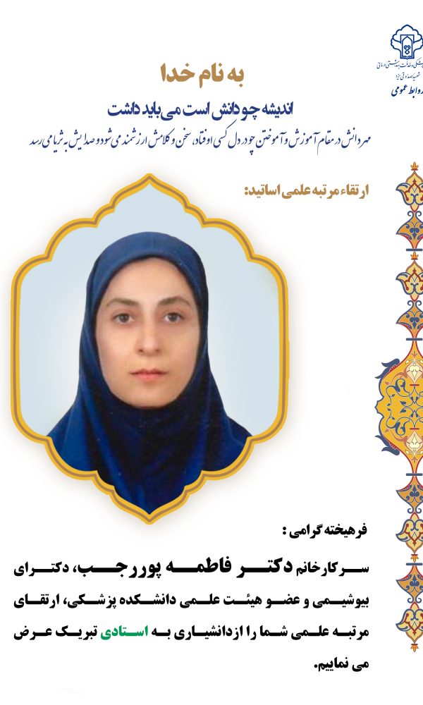 ارتقاء مرتبه علمی دکتر فاطمه پوررجب از دانشیاری به استادی