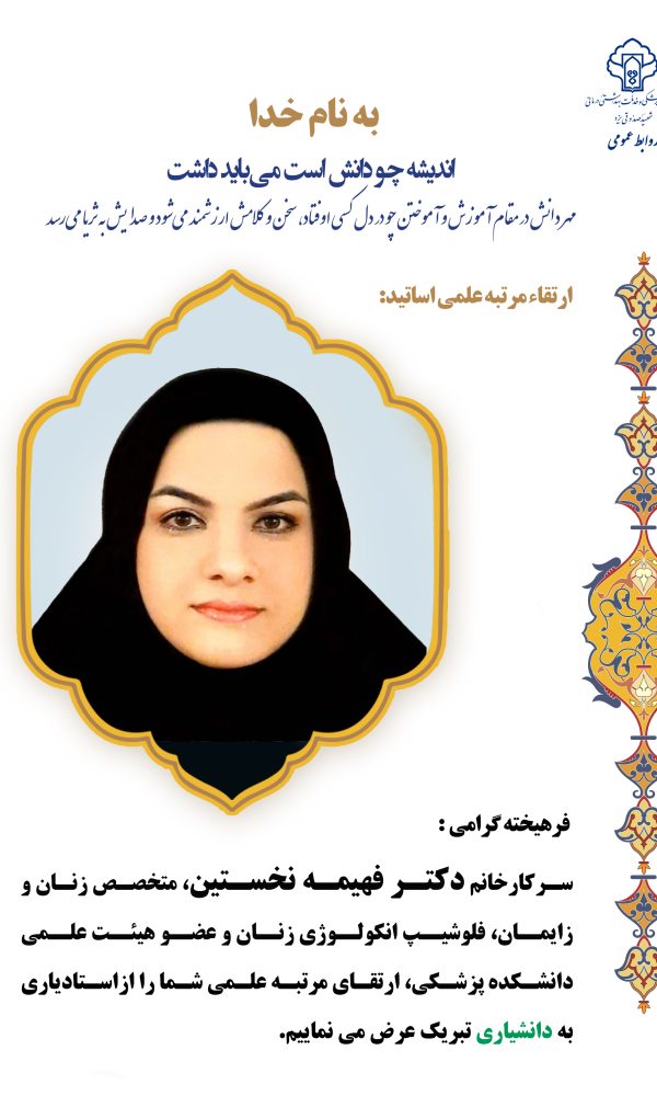 ارتقاء مرتبه علمی دکتر فهیمه نخستین از استادیاری به دانشیاری