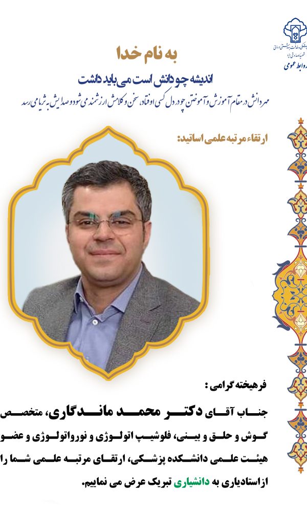 ارتقاء مرتبه علمی دکتر محمد ماندگاری از استادیاری به دانشیاری