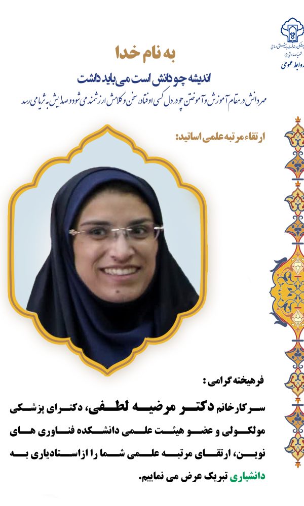 ارتقاء مرتبه علمی دکتر مرضیه لطفی از استادیاری به دانشیاری